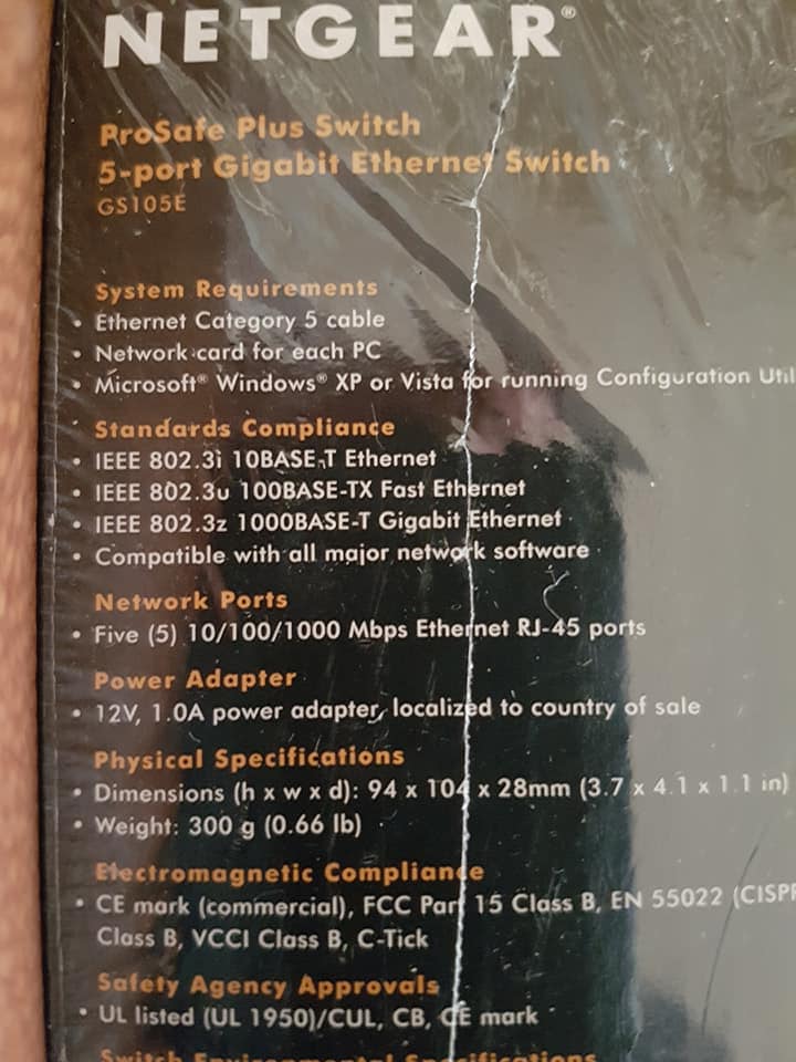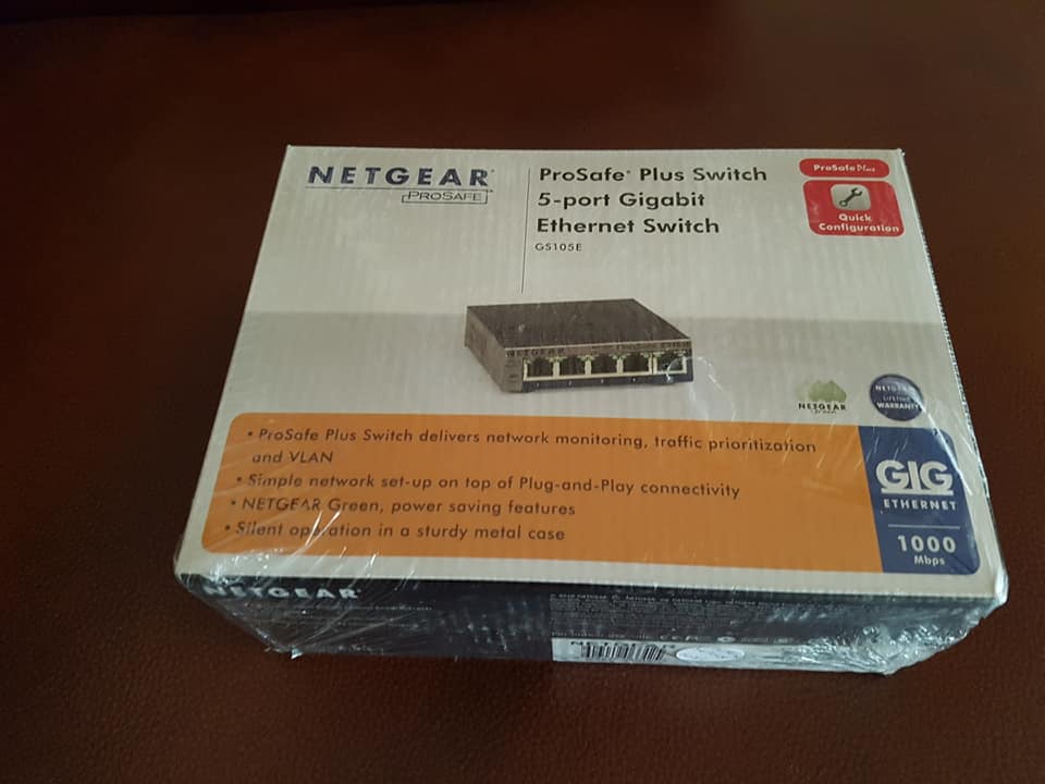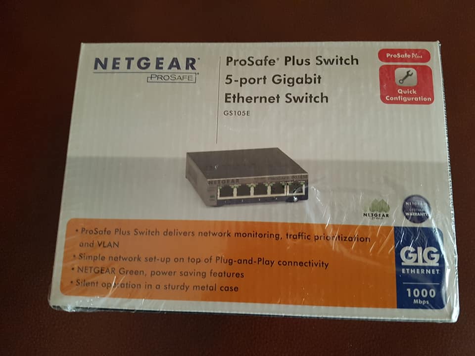 Brend New,NETGEAR 5-port Gigabit ethernet Smart Managed Plus Switch GS105E 5 ports deliver up to 2000 Mbps of dedicated, non-blocking bandwidth per port. Gigabit speed with QoS, VLAN and network monitoring. VLAN support for traffic segmentation. Quality of Service (QoS) for traffic prioritization. Auto “Denial-of-service” (DoS) prevention.