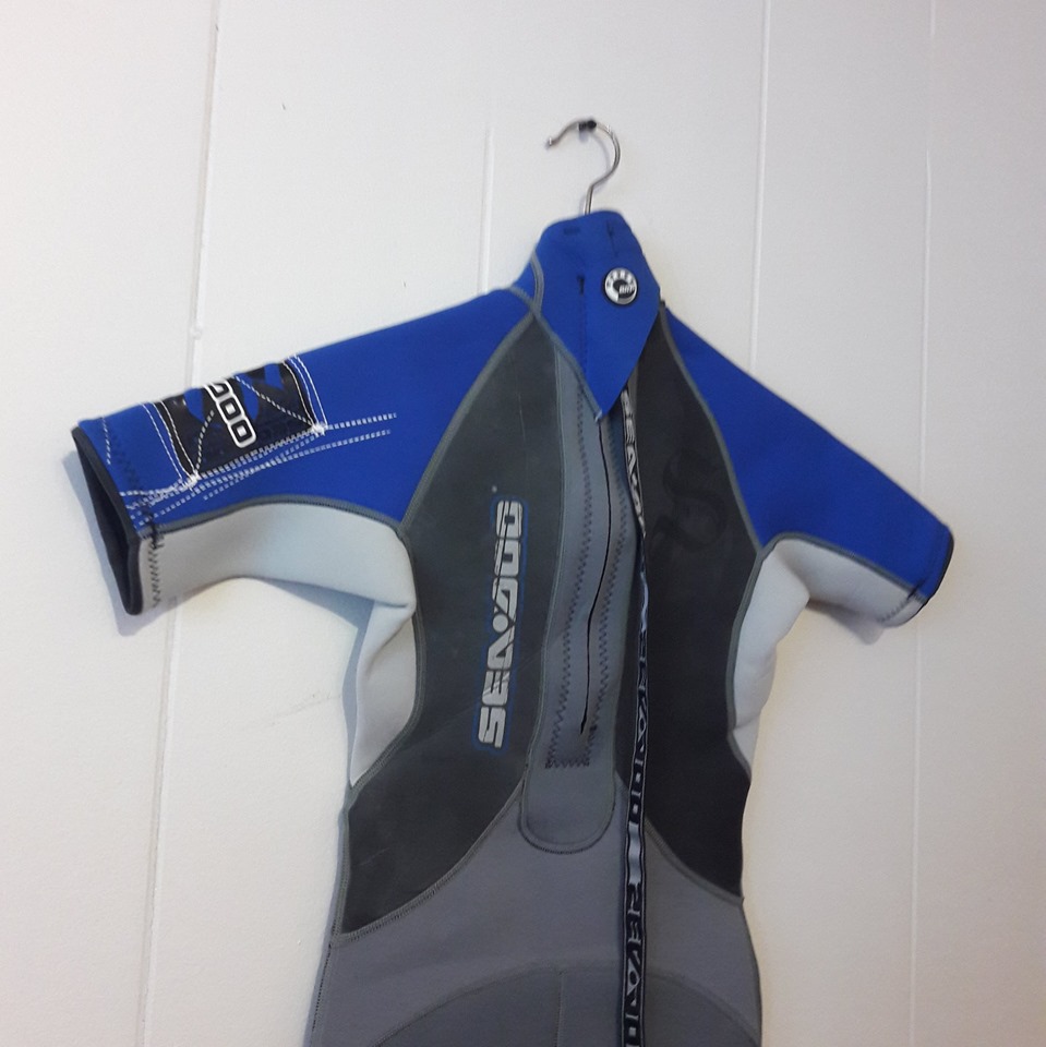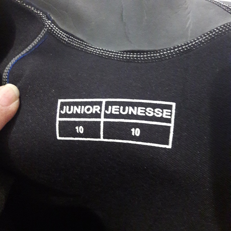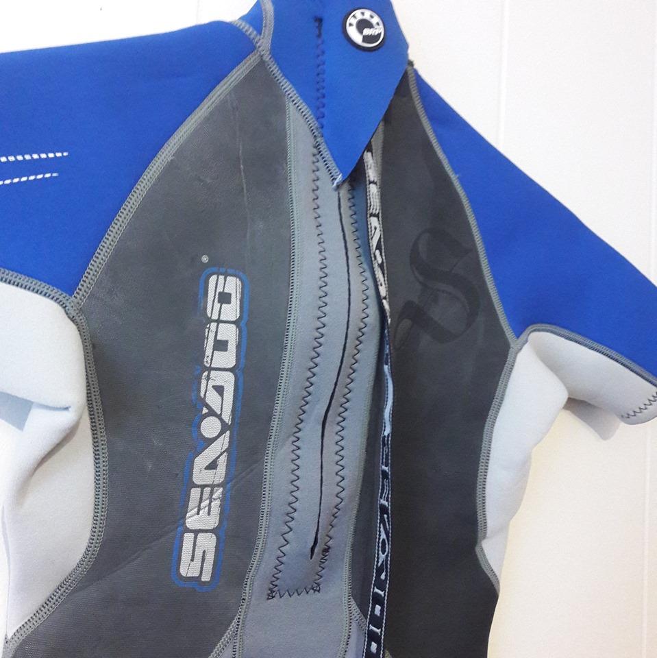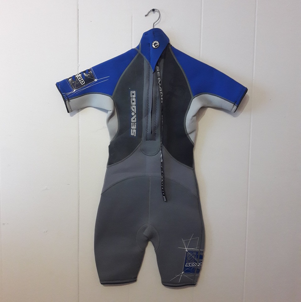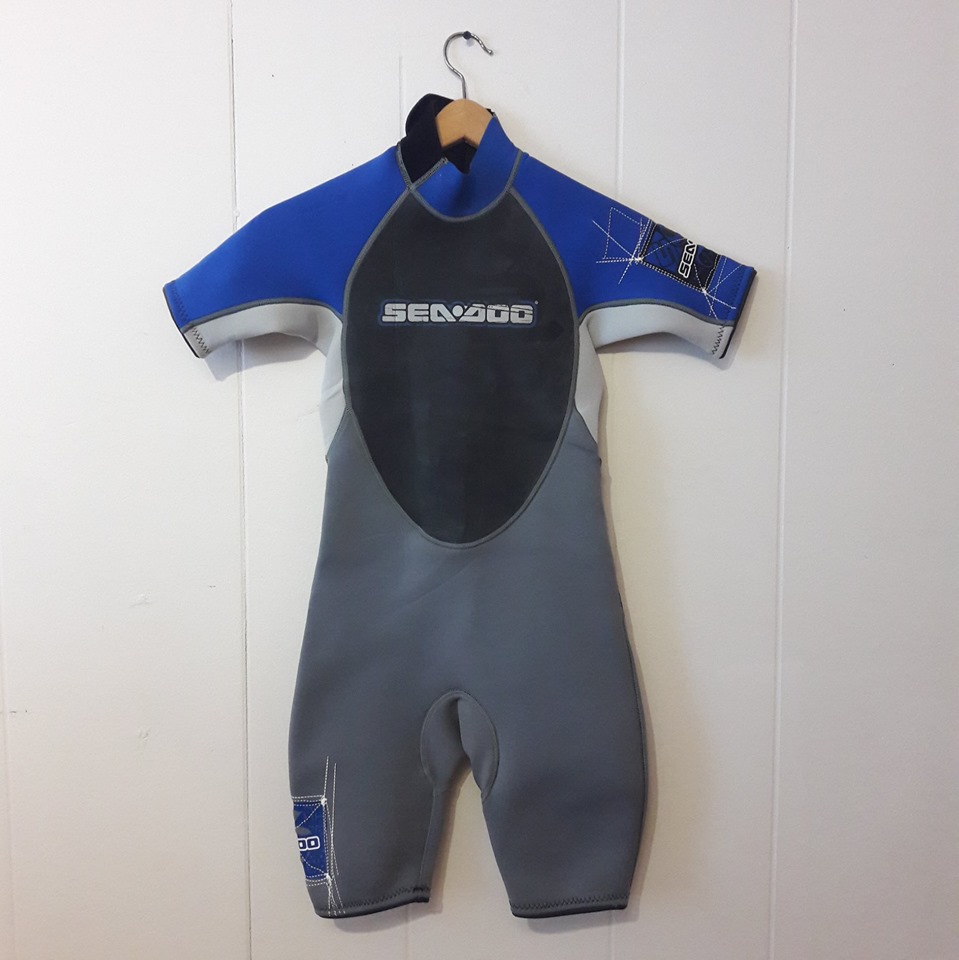 Like New Short-sleeved 32″ H Swimsuit / Wet-suit + Rubber chest panel – Size Junior 10